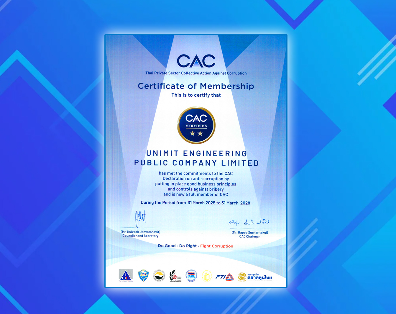 • The Certificate of Renewal for the third-term membership of the Thai Private Sector Collective Action Against Corruption (CAC).