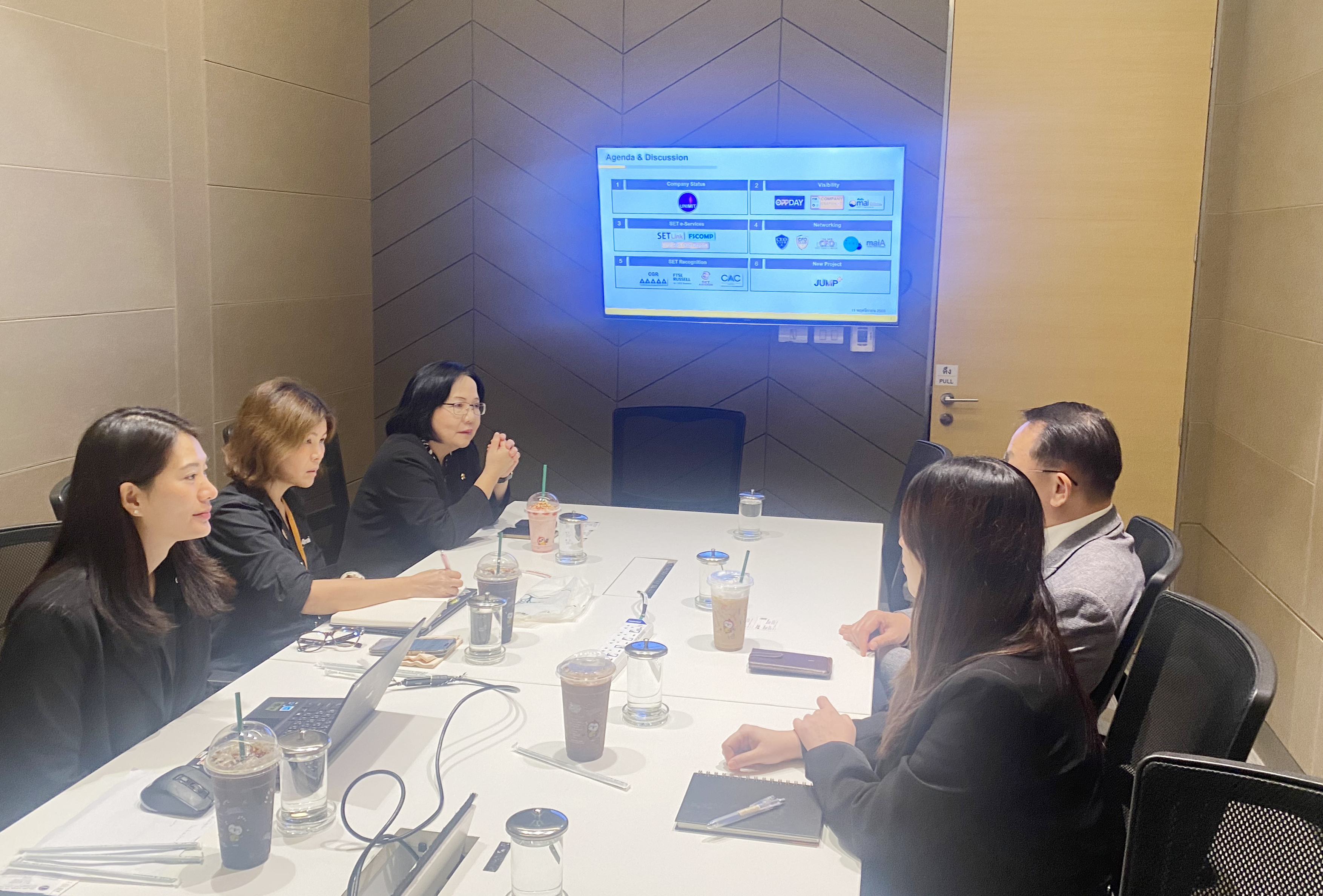 เลขานุการบริษัทฯ เข้าพบผู้บริหาร ตลาดหลักทรัพย์เอ็มเอไอ คุณภัทรมน พิธุพันธ์ Vice President Head of Issuer Department mai คุณทาริกา เกียรติบารมี First Deputy Vice President